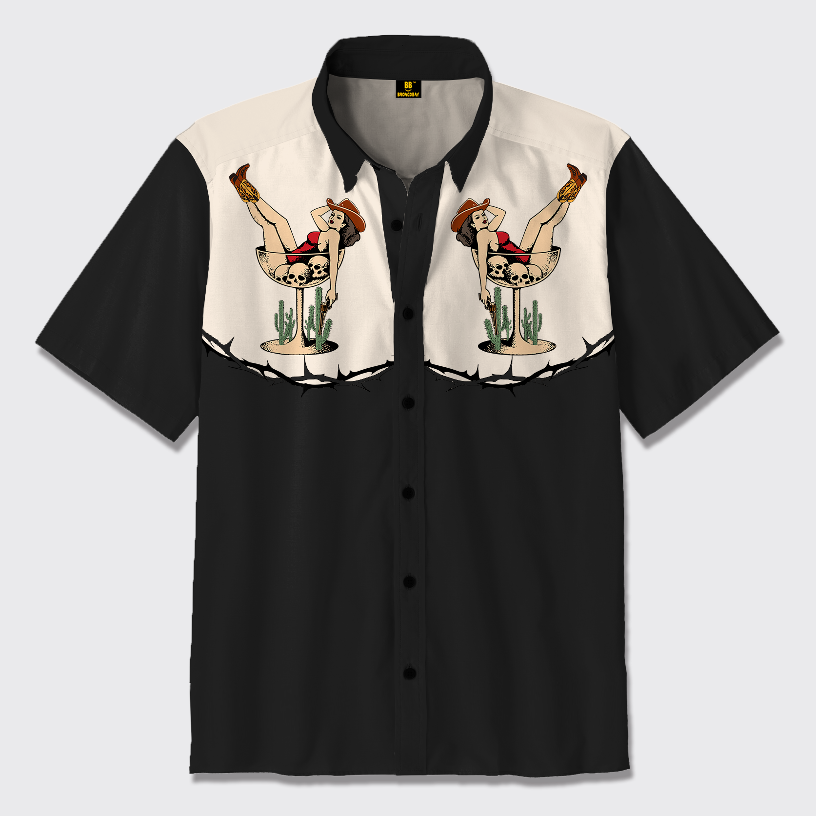 The Cowgirl In The Skull Wine Cup Button Up Shirts