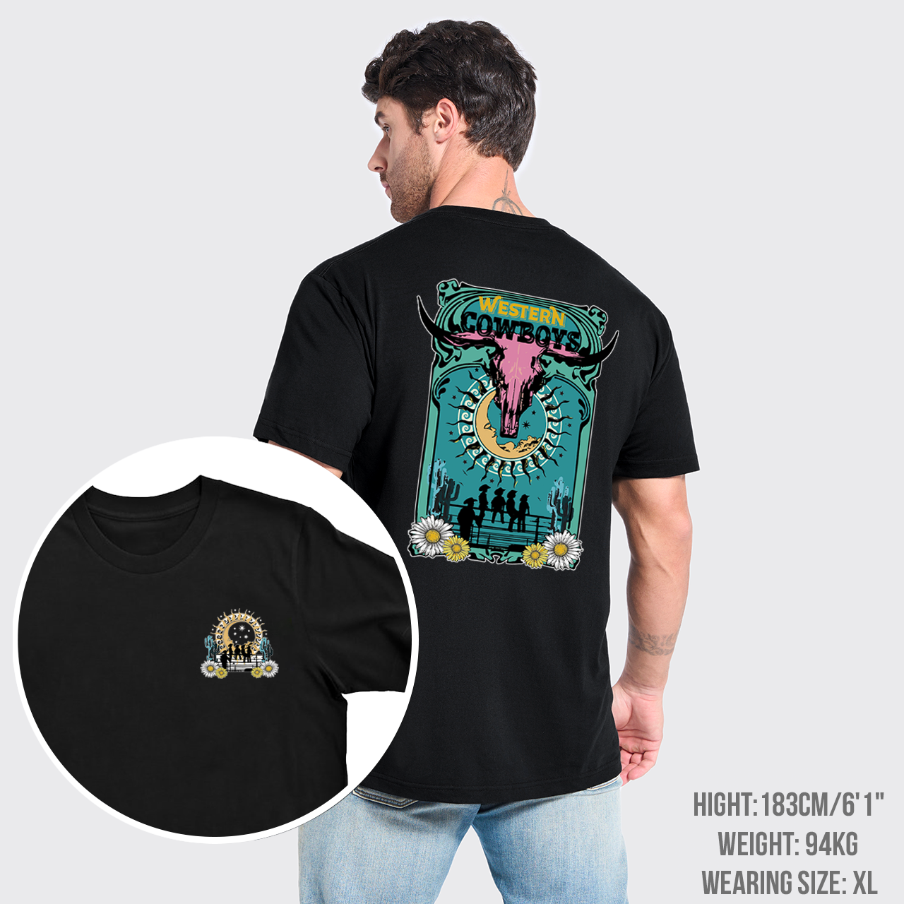 Western Cow Skull Retro Cowboy T-Shirts