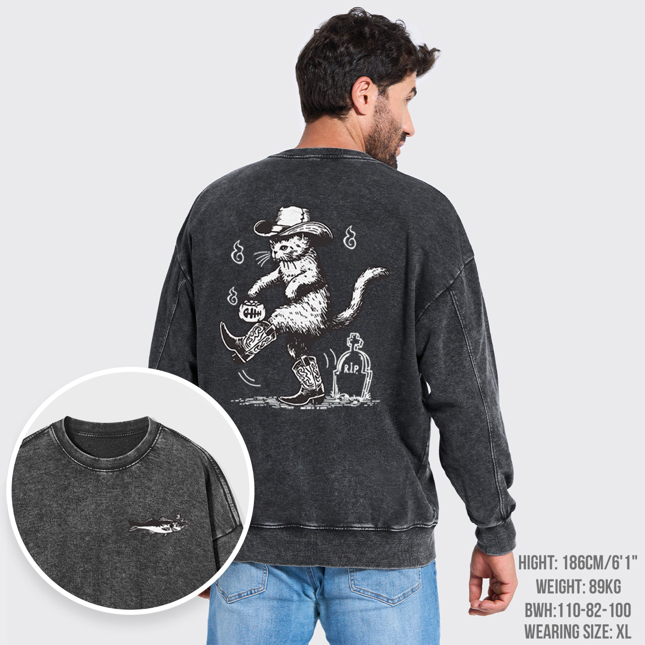 Meowdy Partner Cowboy Cat Washed Sweatshirts
