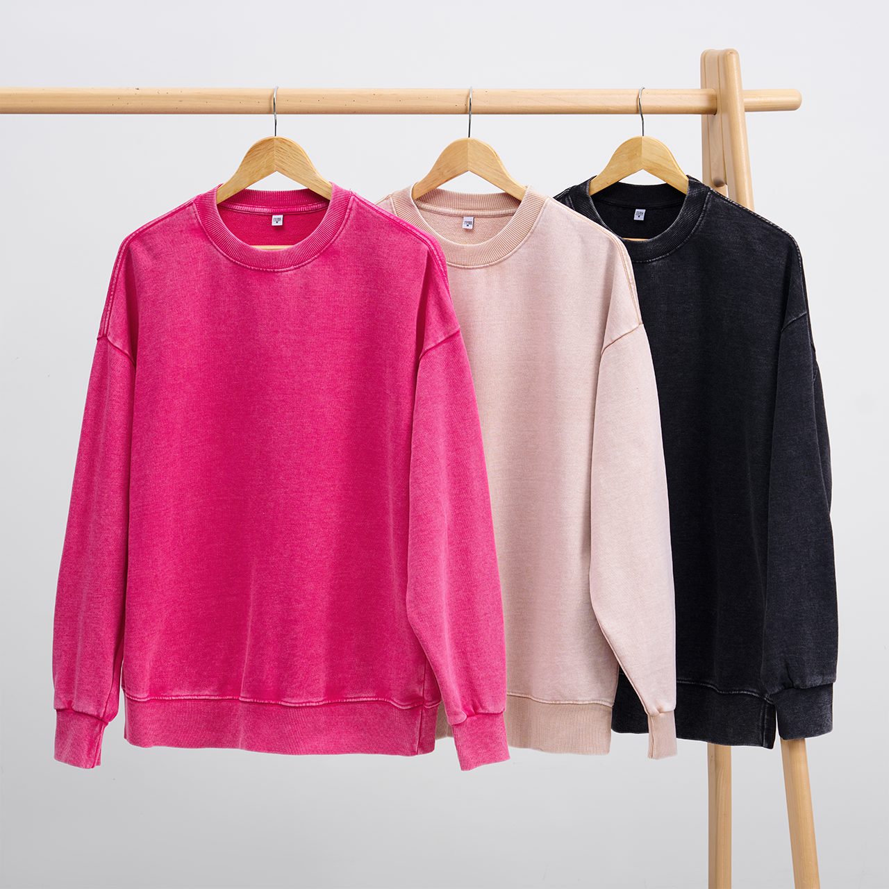 Washed Sweatshirts 3 Pack:Rose Red,Beige,Black