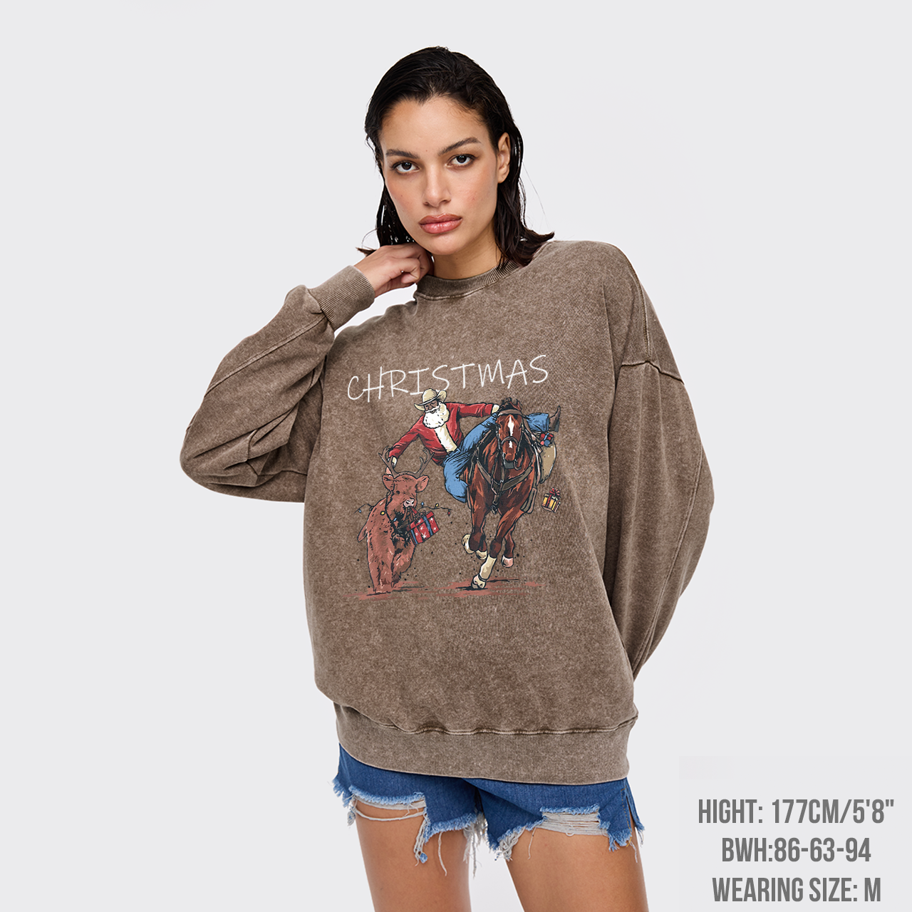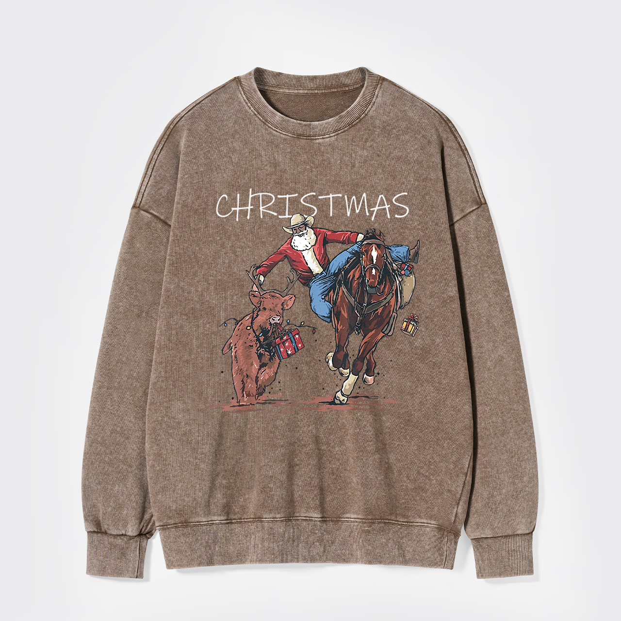 Cowboy Santa Claus Bullfight Washed Sweatshirts