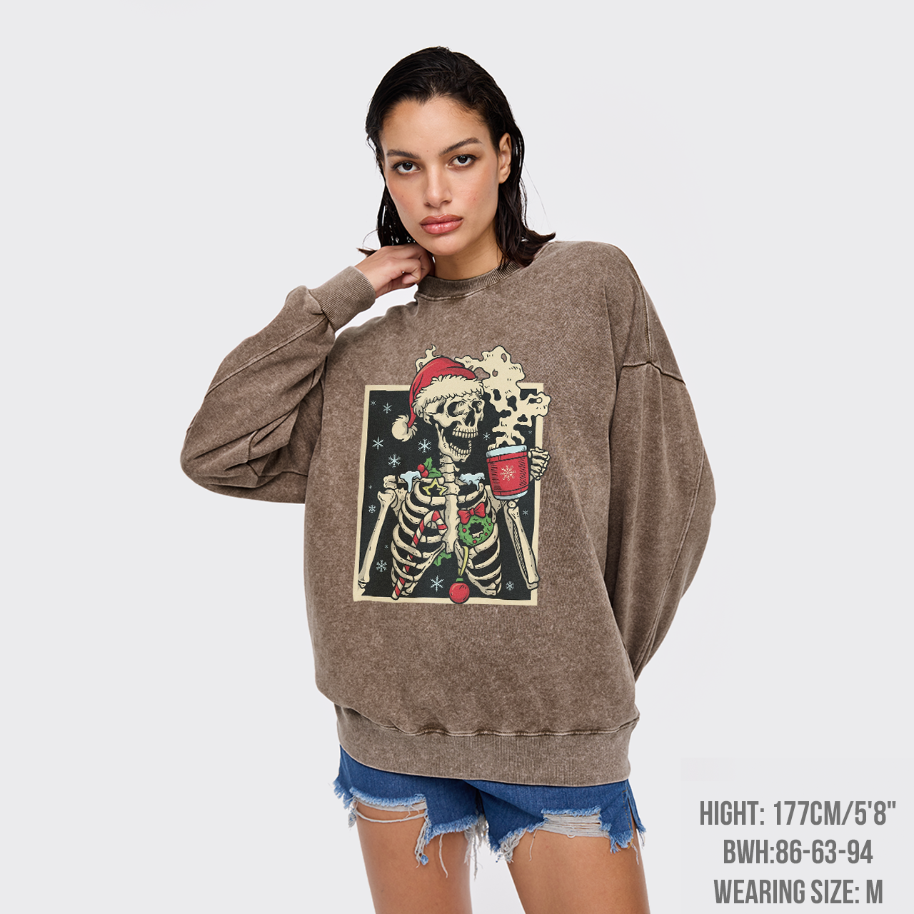 Dead Inside Skeleton Christmas Washed Sweatshirts