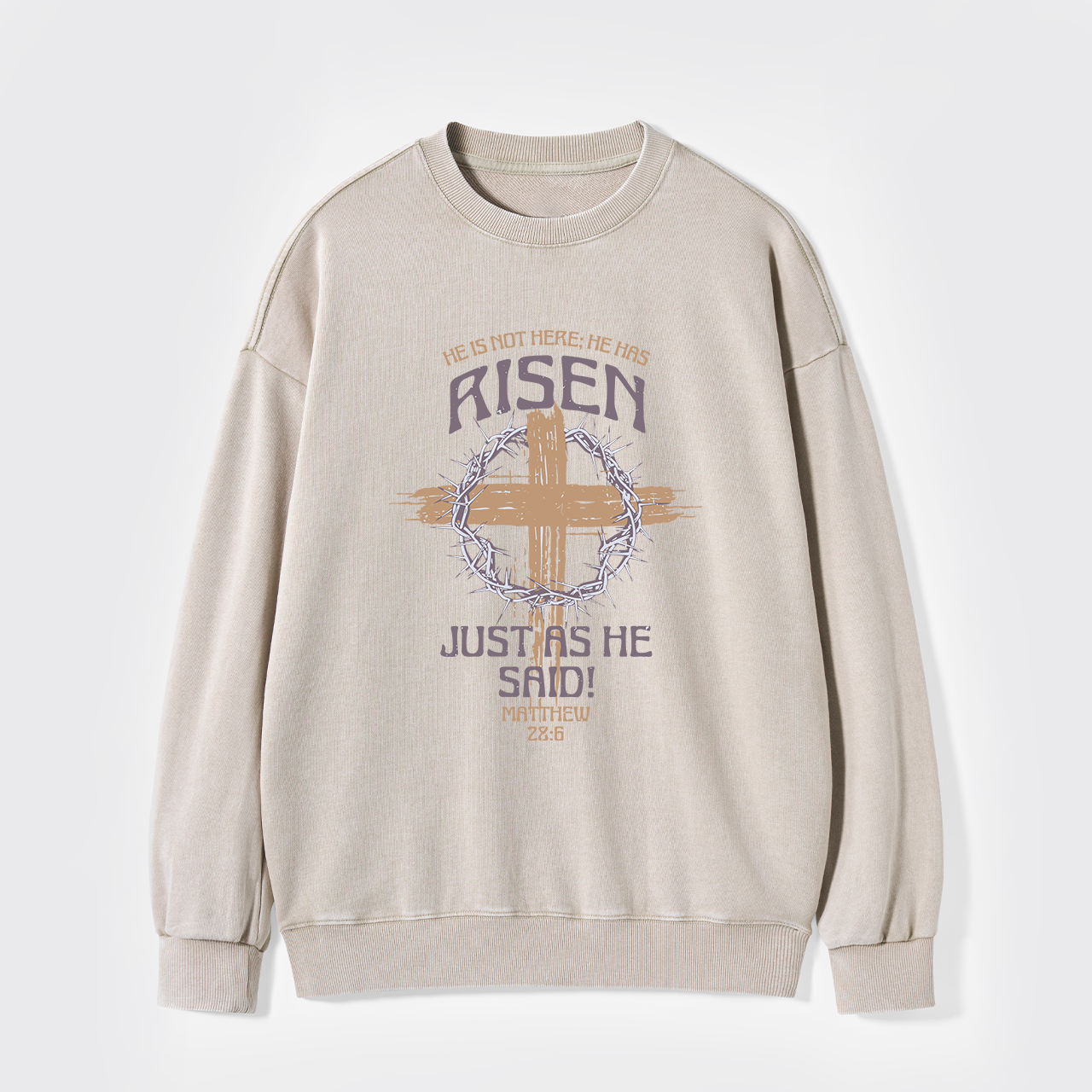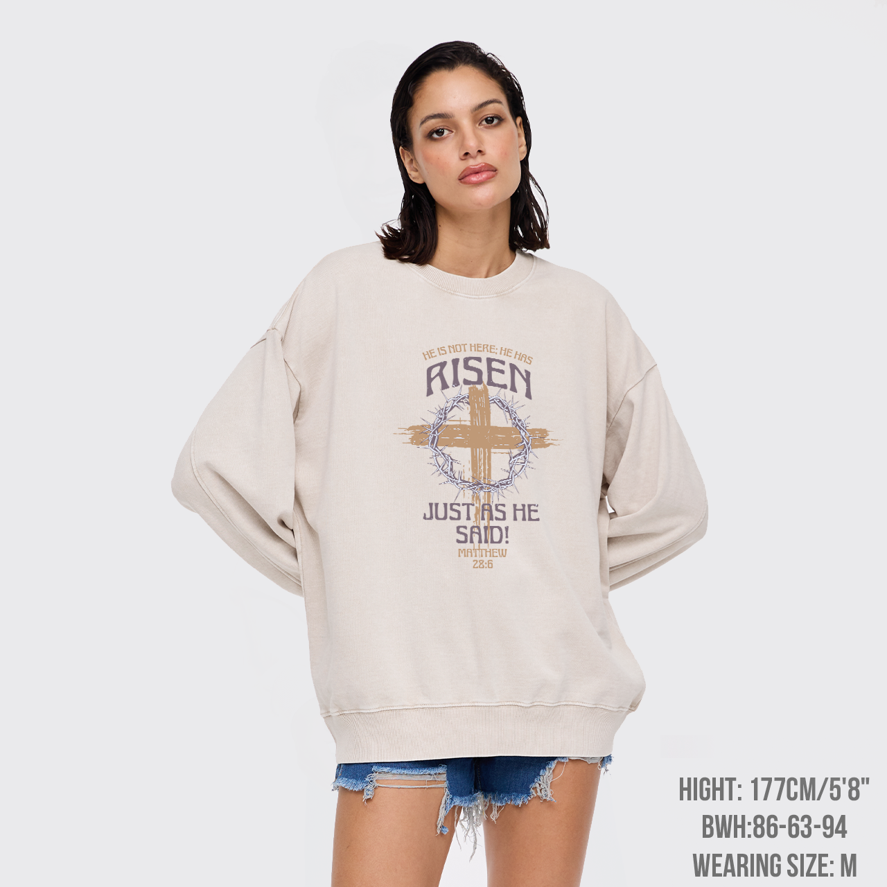 Retro He Is Not Here He Is Risen Washed Sweatshirts