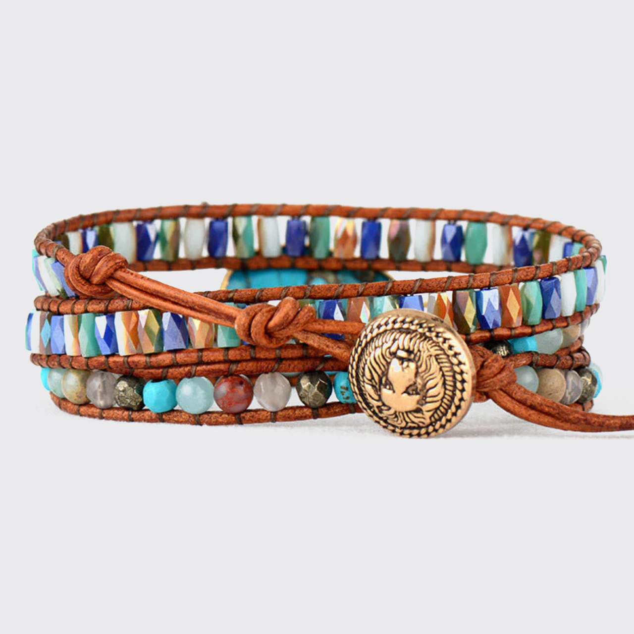 Oval Turquoise Crystal Leather Bracelet