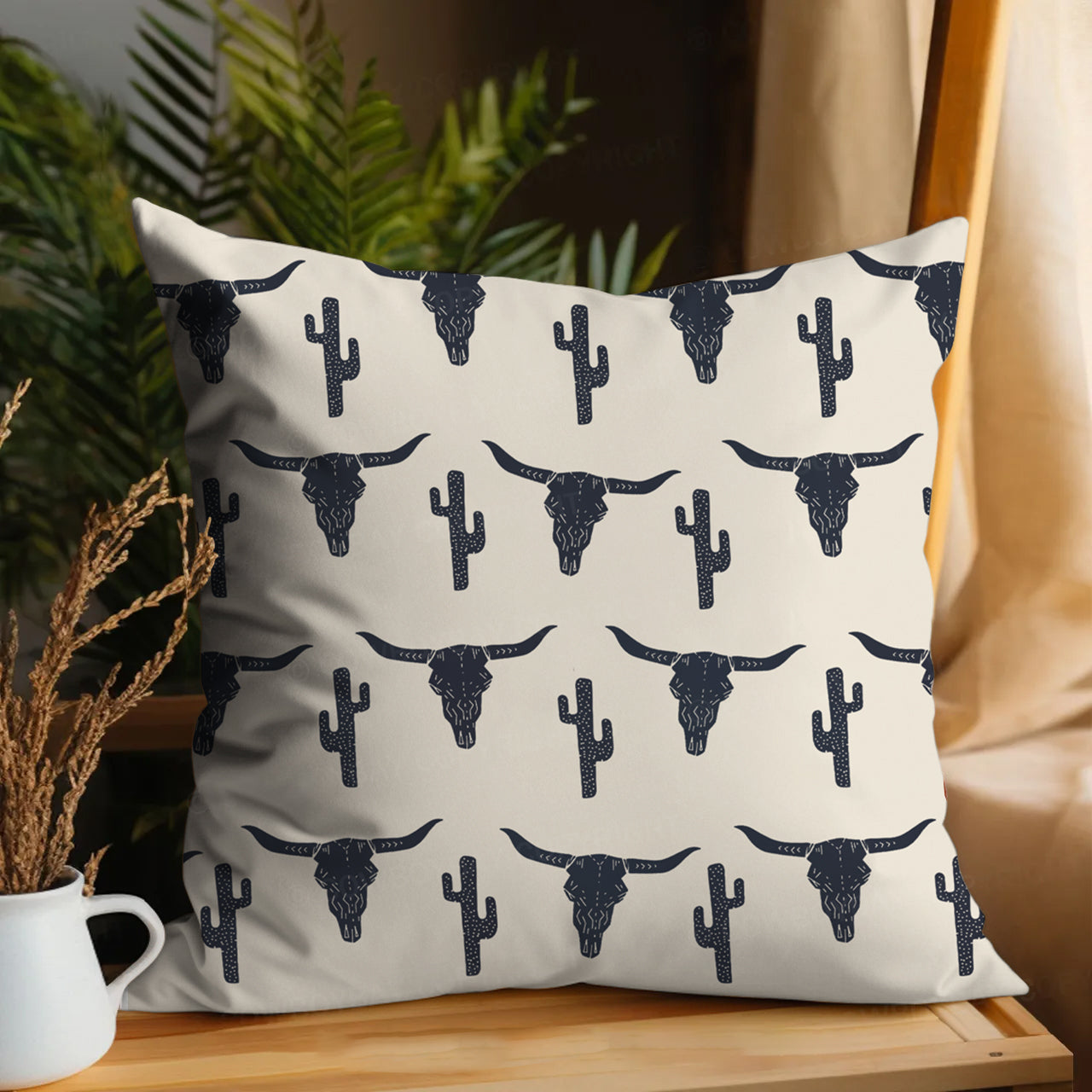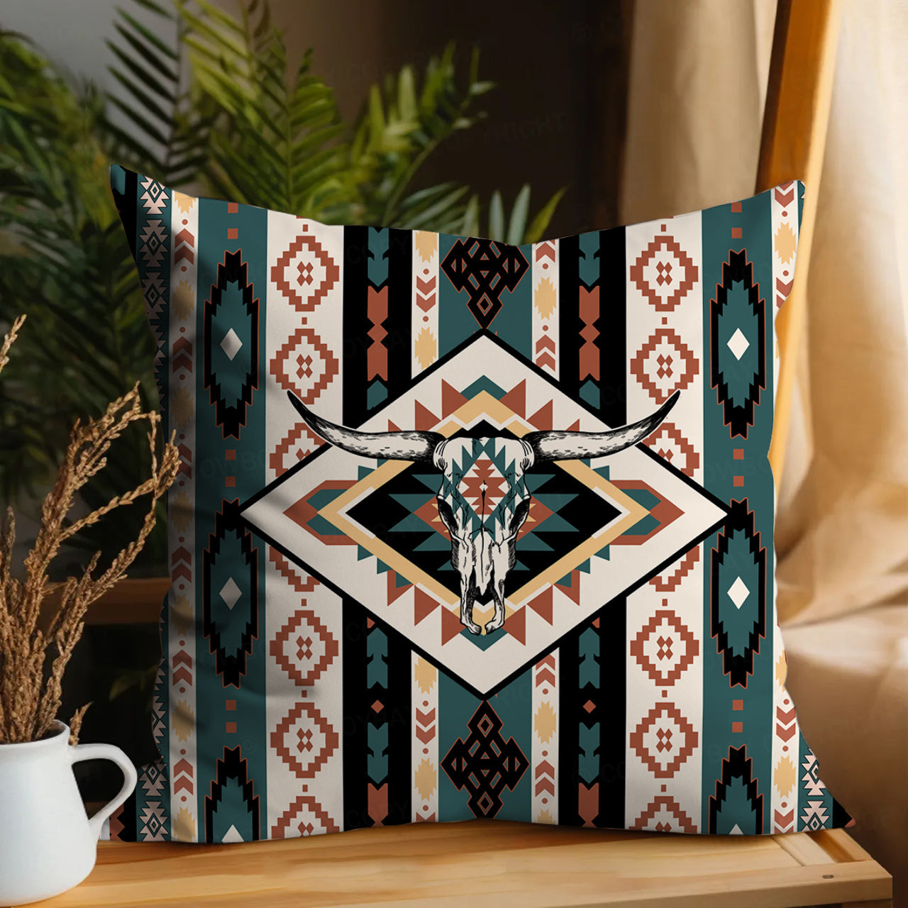 Bull Skull Pattern Pillow Cover_Brown