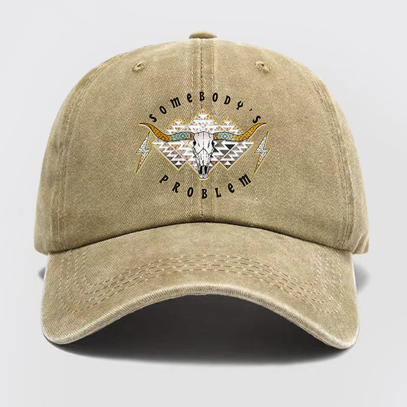 Boho Skull Somebody's Problem Washed Baseball Cap