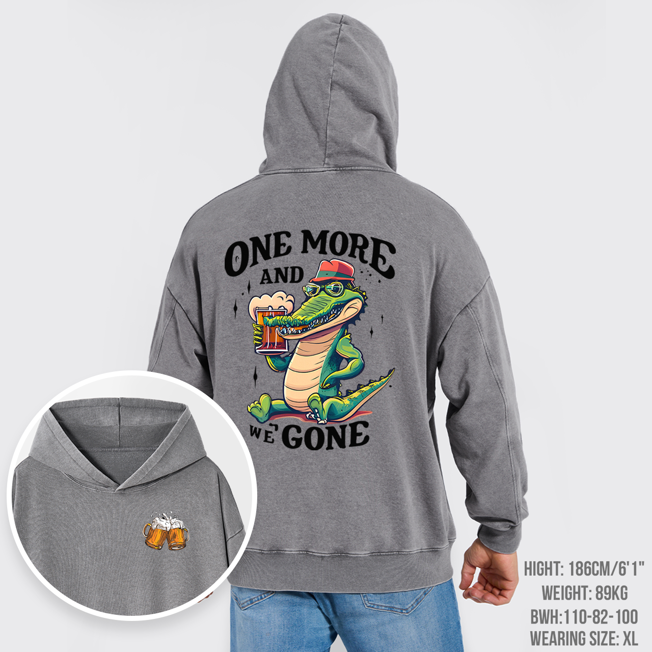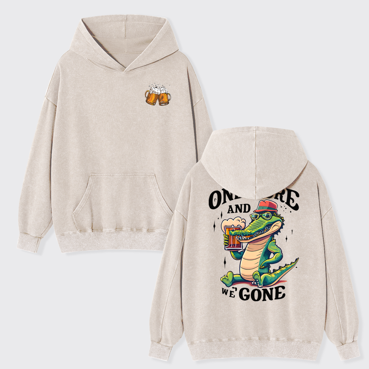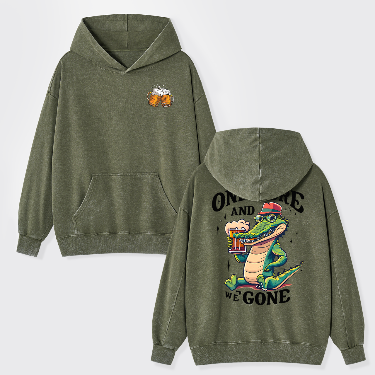 A Crocodile Drinking Beer Garment-Dye Hoodies