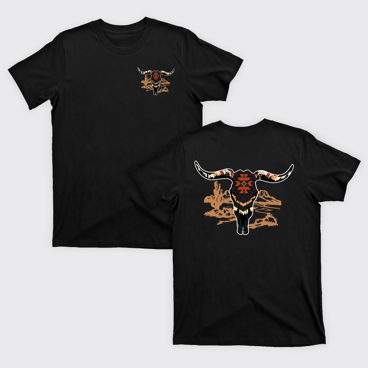 Aztec Bull Skull with Desert T-Shirts