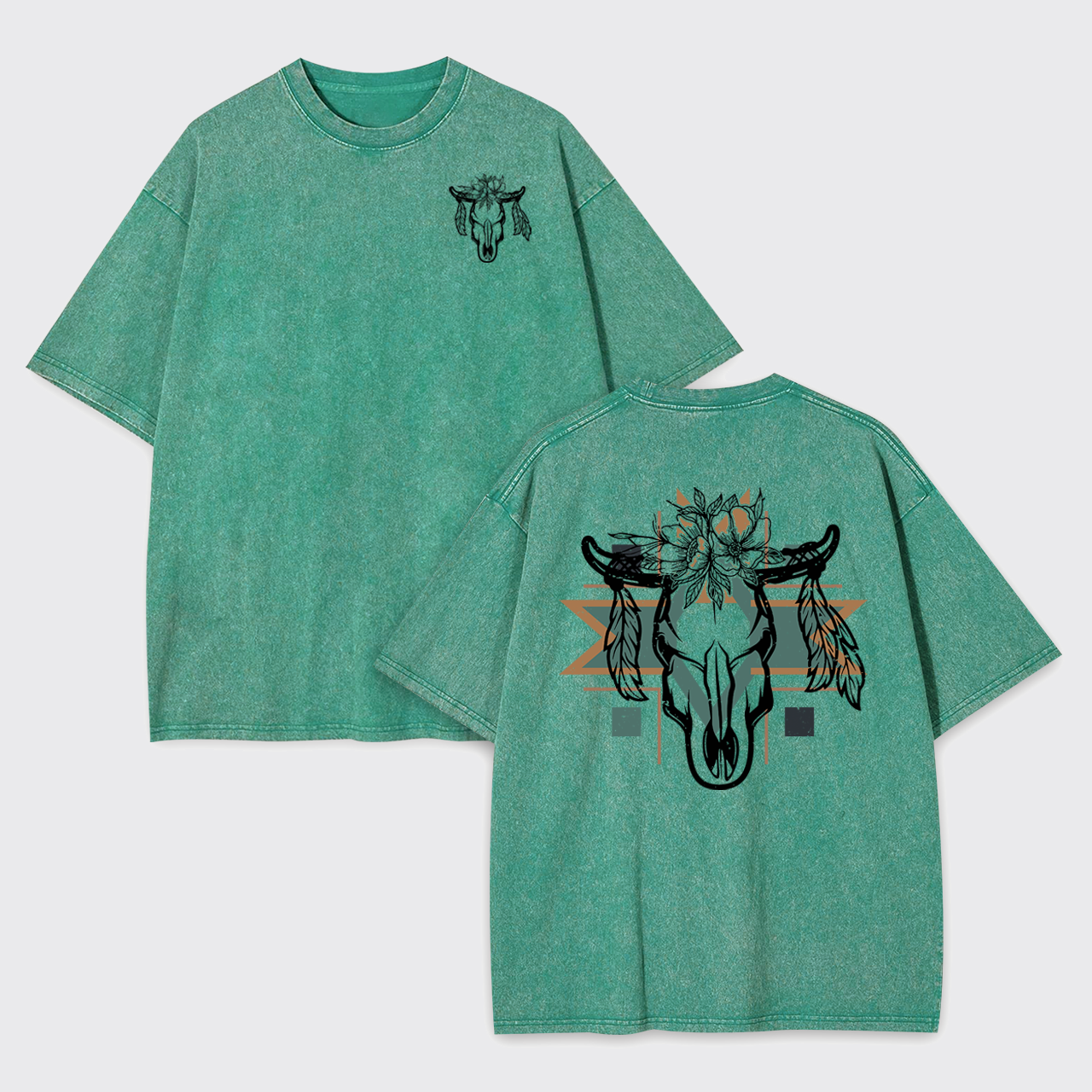 Aztec Cow Skull Garment-dye Tees