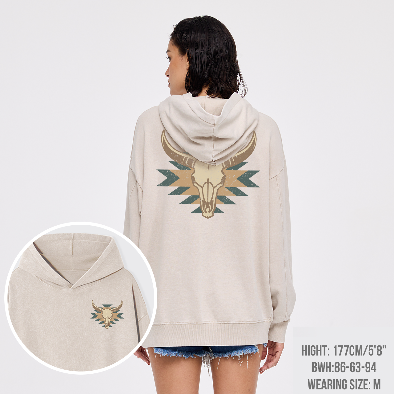 Boho Cow Skull Garment-Dye Hoodies
