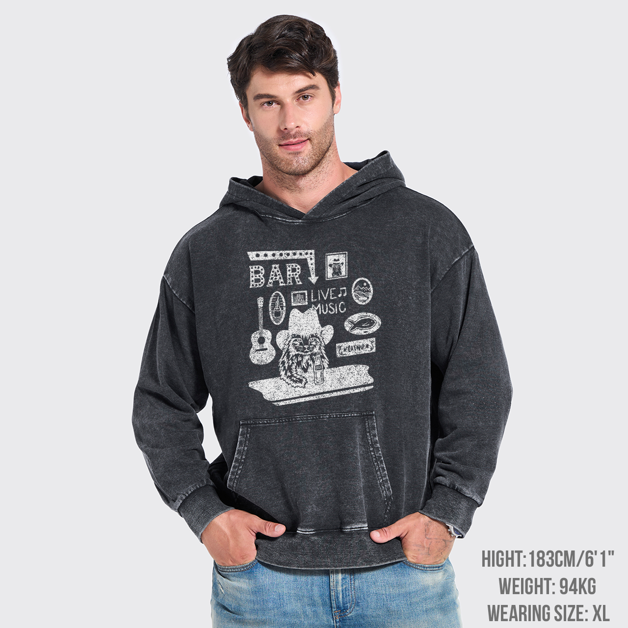 Cat with A Cowboy Hat In A Country Bar Garment-Dye Hoodies