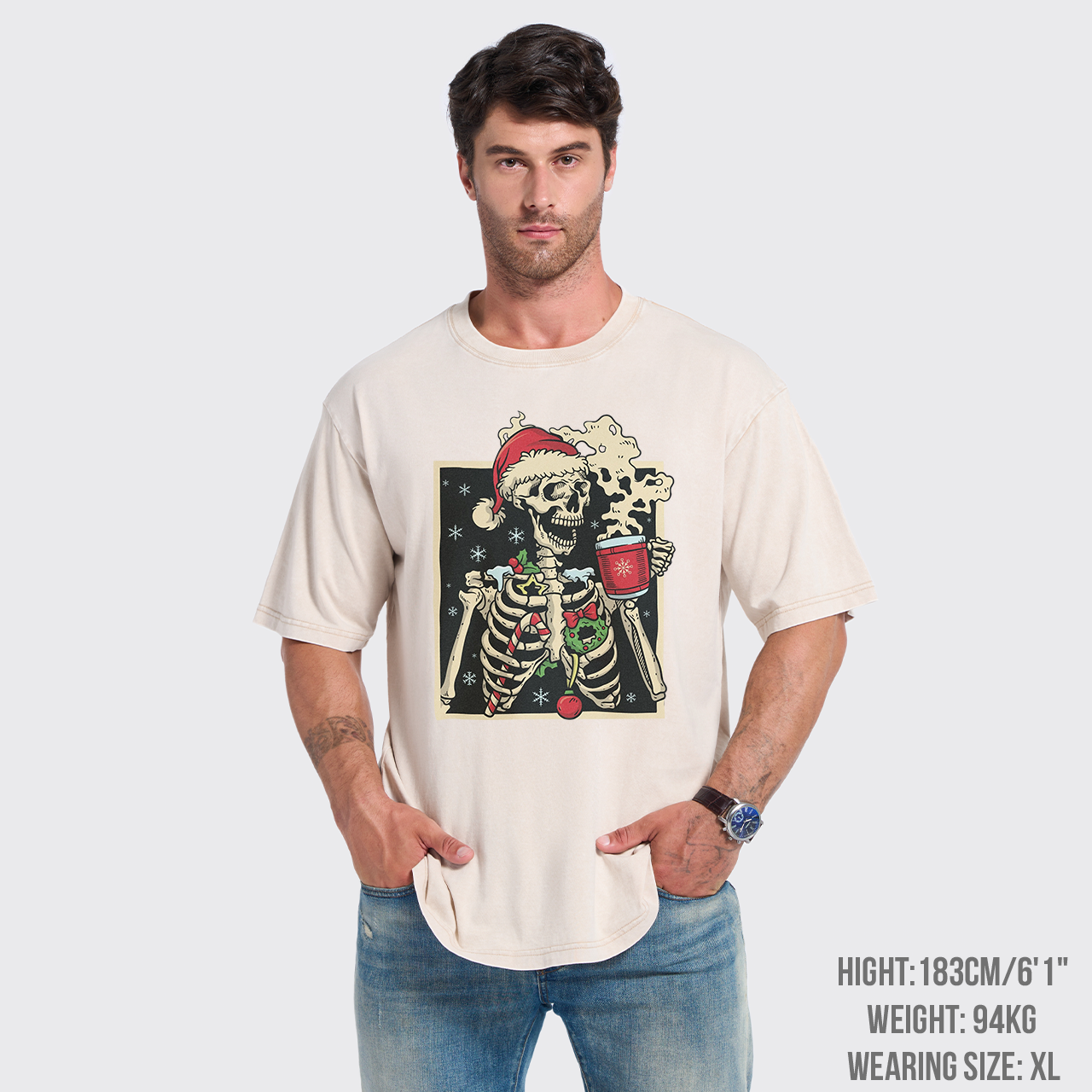 Dead Inside Skeleton Christmas Garment-dye Tees