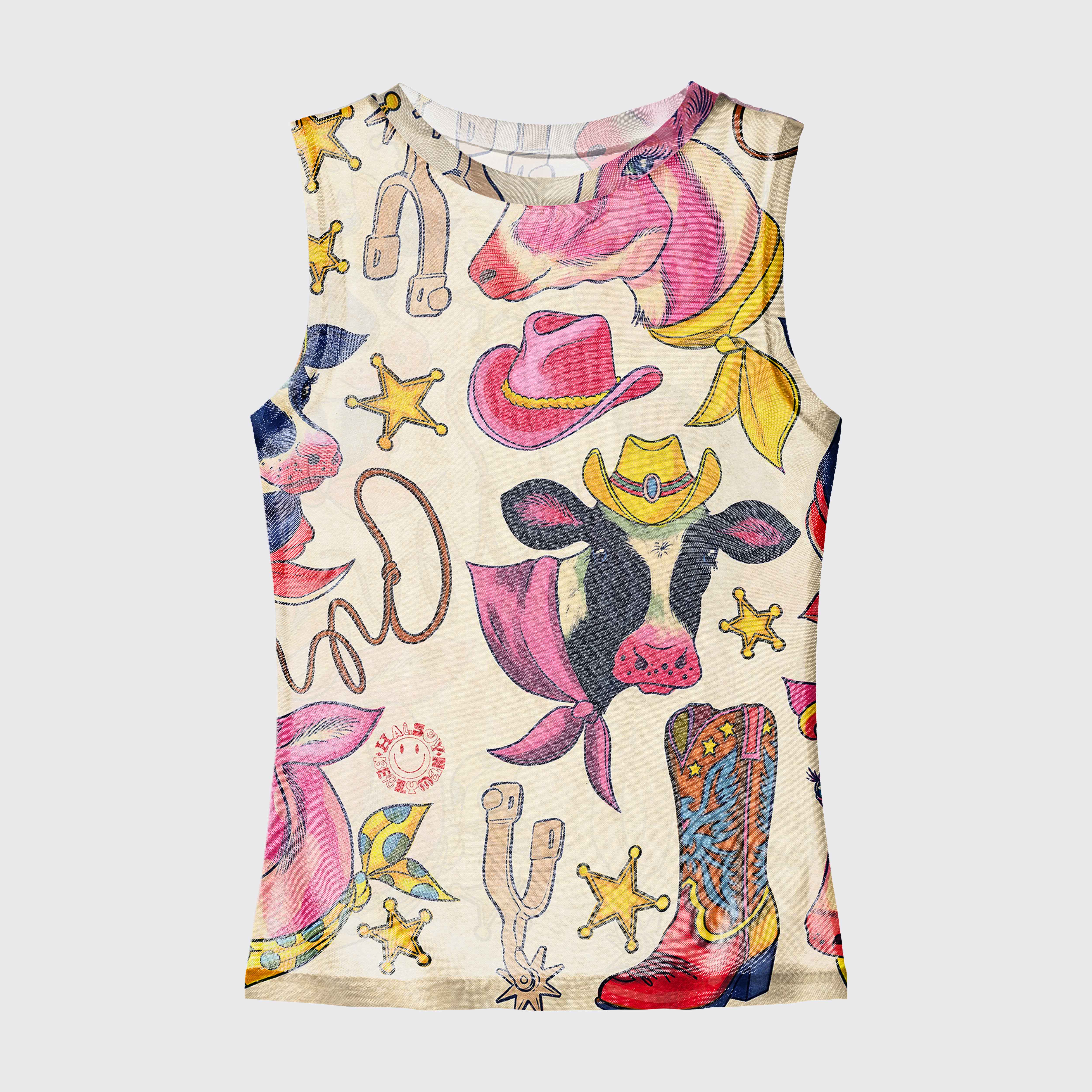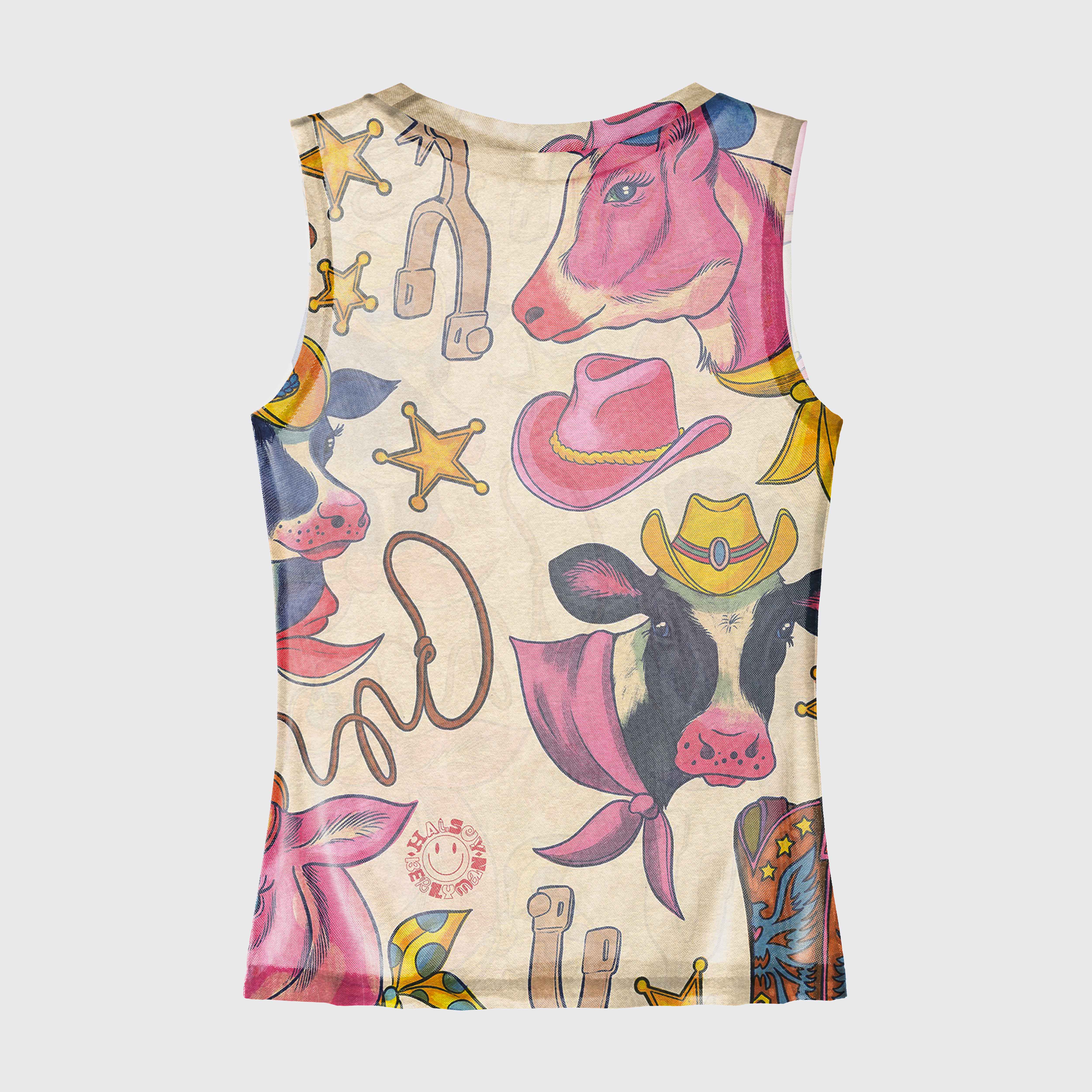 Rodeo Chic Colorful Cowboy Mesh Tank Top
