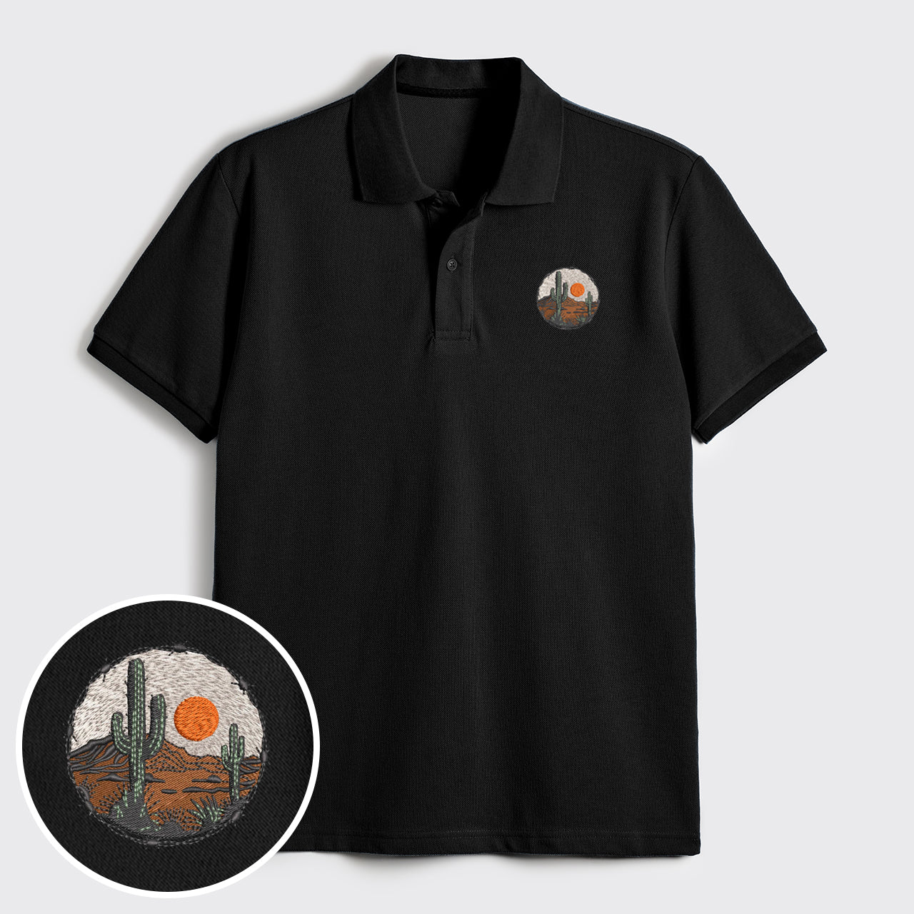 Western Desert Sunset Embroidered Polo Shirts